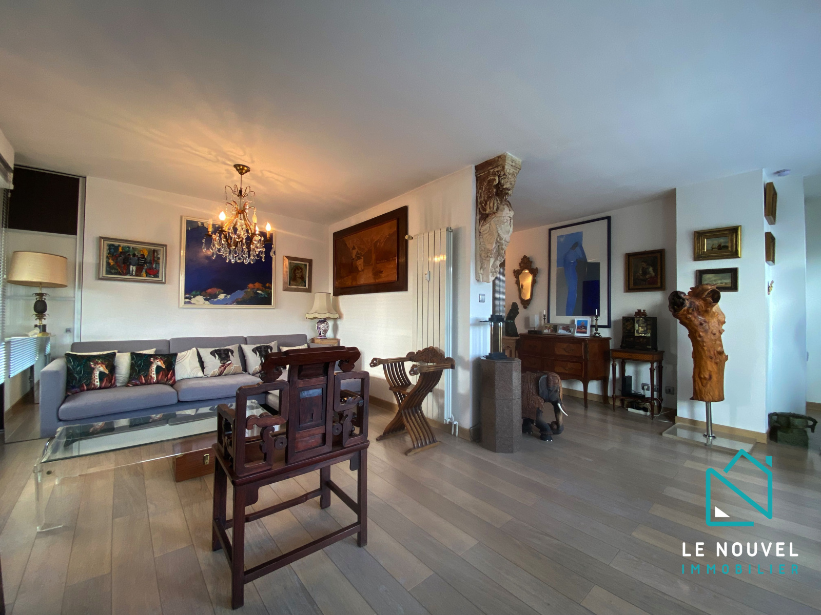 Côté droit vous trouverez un grand salon lumineux proposant l'accès à une terrasse de 56m² faisait le tour d'une partie de l'appartement