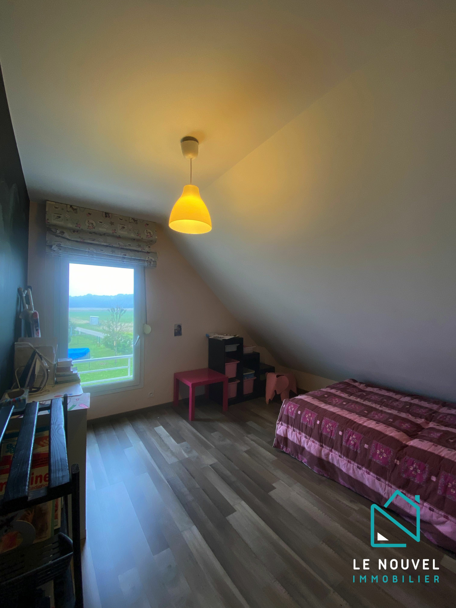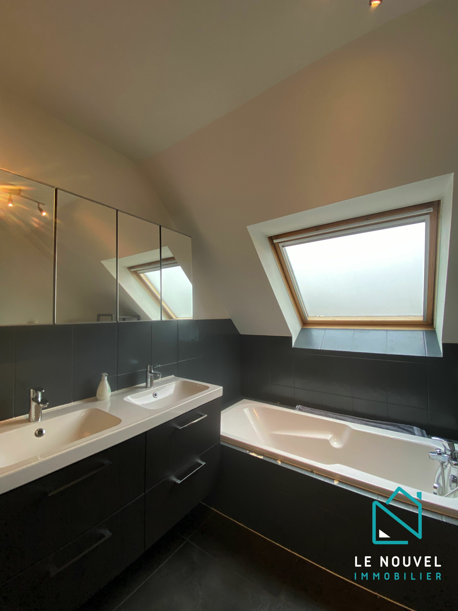 A l'étage se trouvent 4 chambres avec placards intégrés et une salle de bain lumineuse avec double vasque, douche, baignoire et WC.
